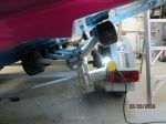 pvc pipe of conduit to a wall, I've done that in the past, and have a trailer here now that I will do that on before the boats leaves here for California, the Larson hard top, the roller trailer also caused the hull to be deformed on that boat.  I just bought a roller trailer I am converting to a flat bed to haul my Jeep on,  the roller assy frame was easy to remove, and has holes drilled in the main frame to re-position the roller frame forward or backwards,  if your trailer has that option, you could easily move the roller assy frame backwards to extend the bunks to the stern of your boat, or even extend the bunks past the stern 1" , that would be my suggestion.